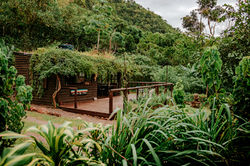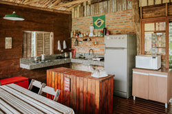 The environment proposes a rustic and cozy structure, built with reused materials that integrate into the landscape.